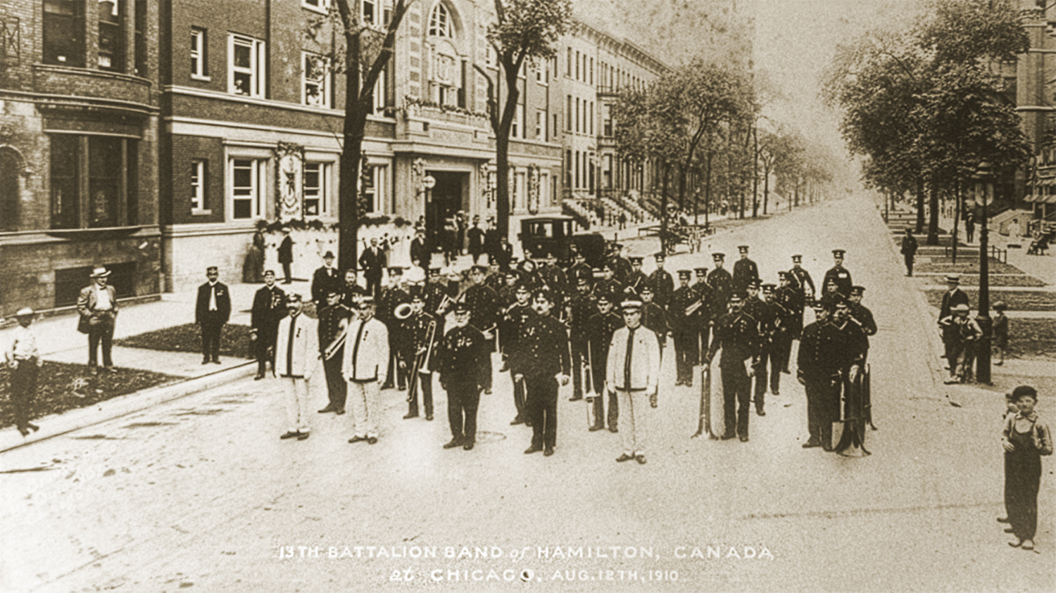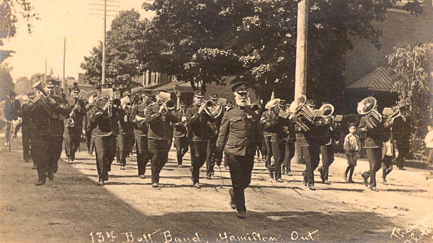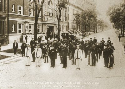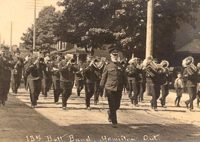 Founded the band as Canada’s first enlisted military band in 1855 as the Hamilton Artillery Band. Later it became the 13th Bn Band.